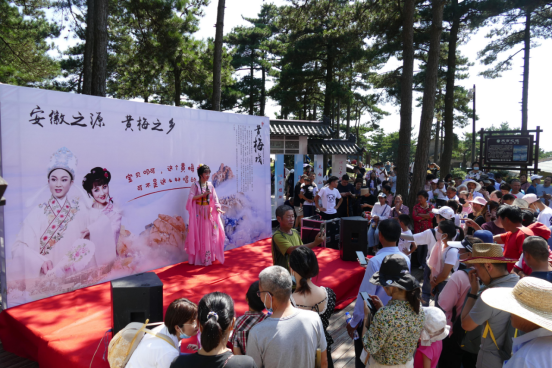 國慶期間,正值第九屆黃梅戲藝術(shù)節(jié)在安慶舉行,天柱山景區(qū)在游客中心廣場(chǎng)和景區(qū)內(nèi)開展黃梅戲演出,讓游客在游玩之余,還能欣賞到精彩的黃梅戲表演。